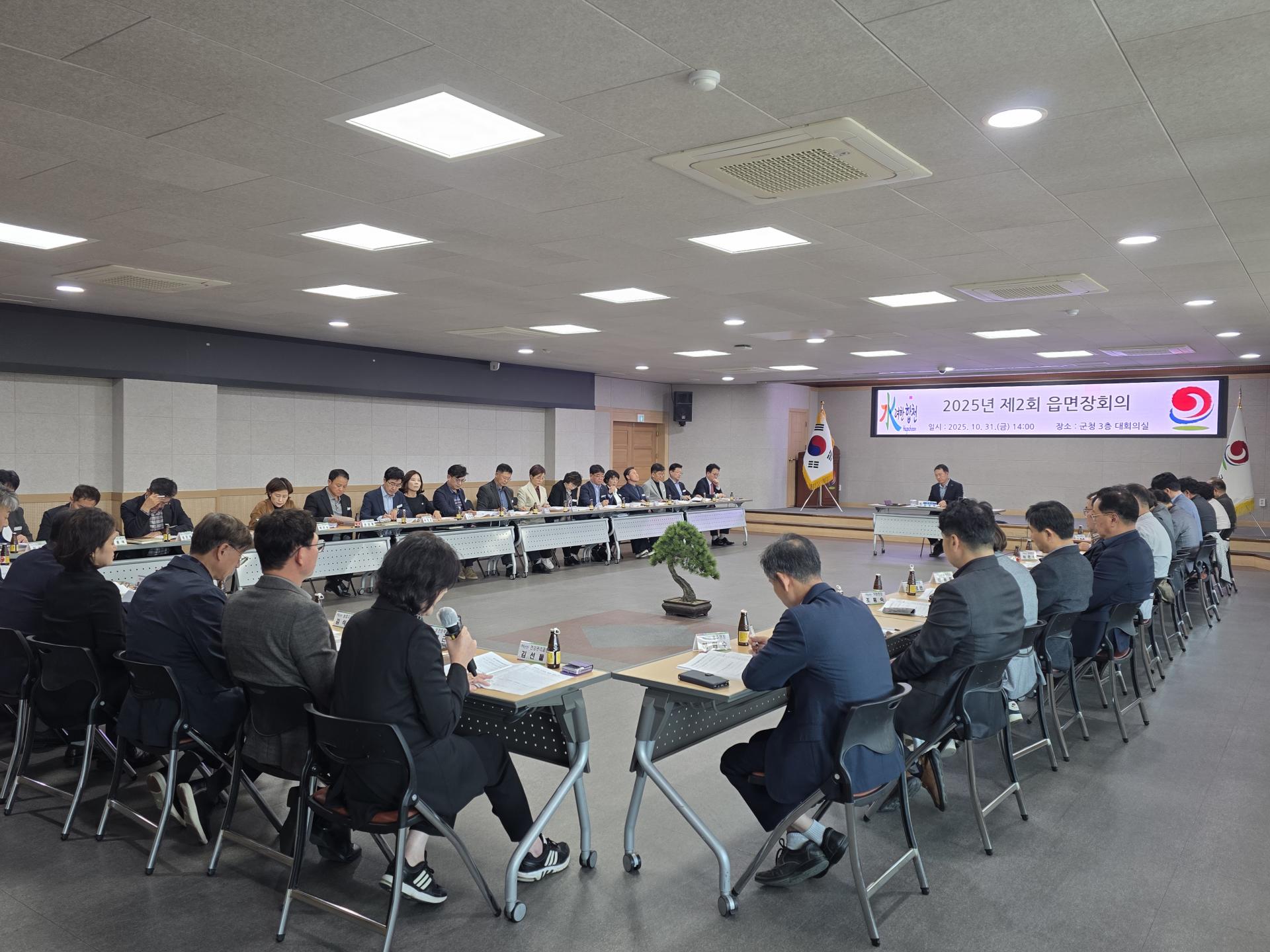 합천군이 31일, 장재혁 부군수 주재로 부서장 및 읍·면장 등 군 관계자 50여 명이 참석한 가운데 2025년 제2회 읍면장 회의를 개최했다.