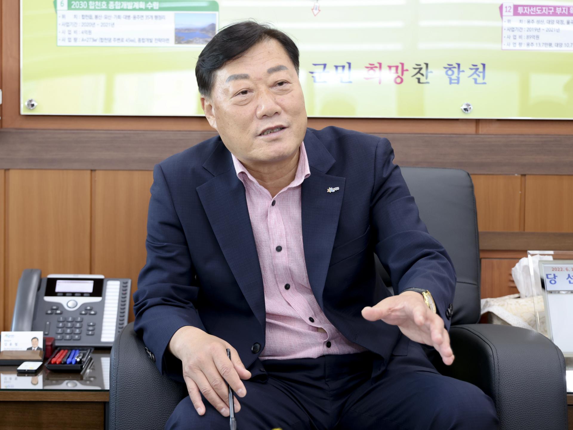 (기자: 군민 판단도 중요하겠지만 군수님의 재선 의지를 듣고 싶다.) 저의 뜻과 군민들의 뜻이 맞고 잘 모아져야 되는 일이라고 본다. 군민들이 원한다면 재선해서 공약들을 더 다지고 싶다.”