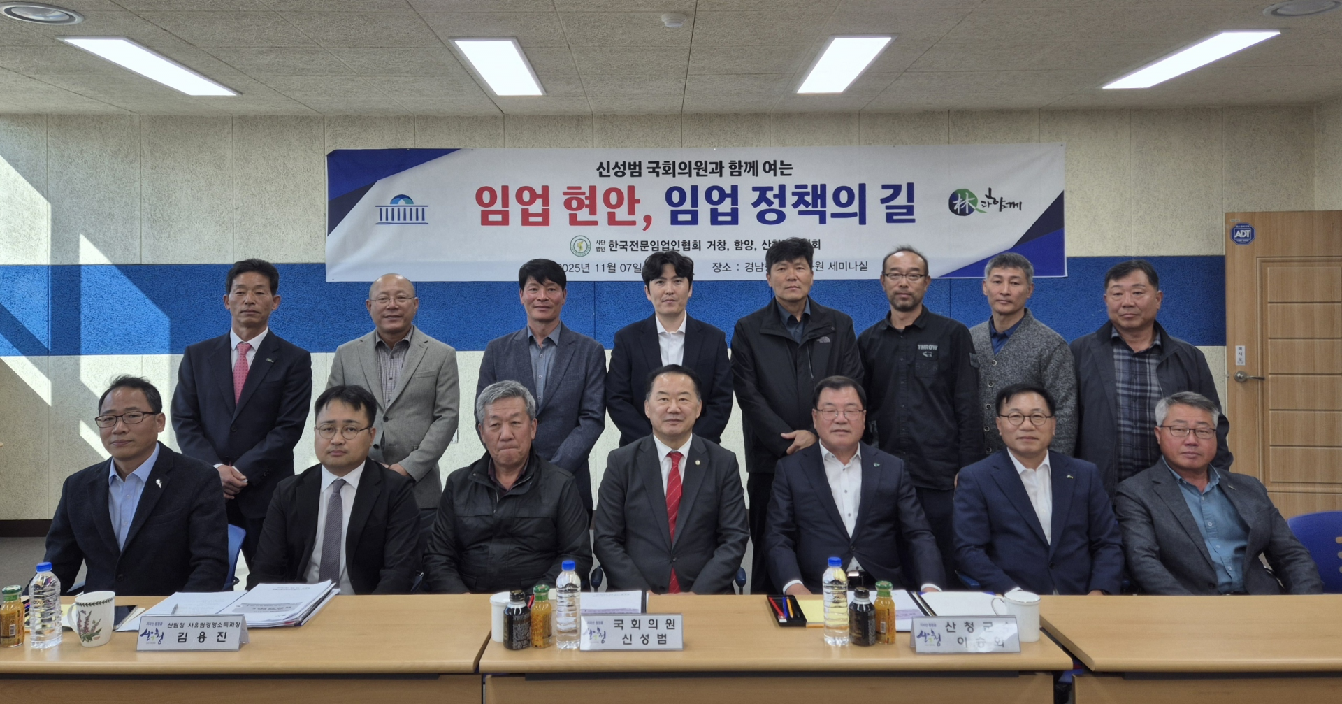 신성범 국회의원(경남 거창·함양·산청·합천)은 7일 경남항노화연구원 세미나실에서 ‘임업 소통 간담회’를 열고, 산불특별법 시행을 앞둔 임업‧산림 분야의 주요 현안과 정책 대응 방향을 논의했다.